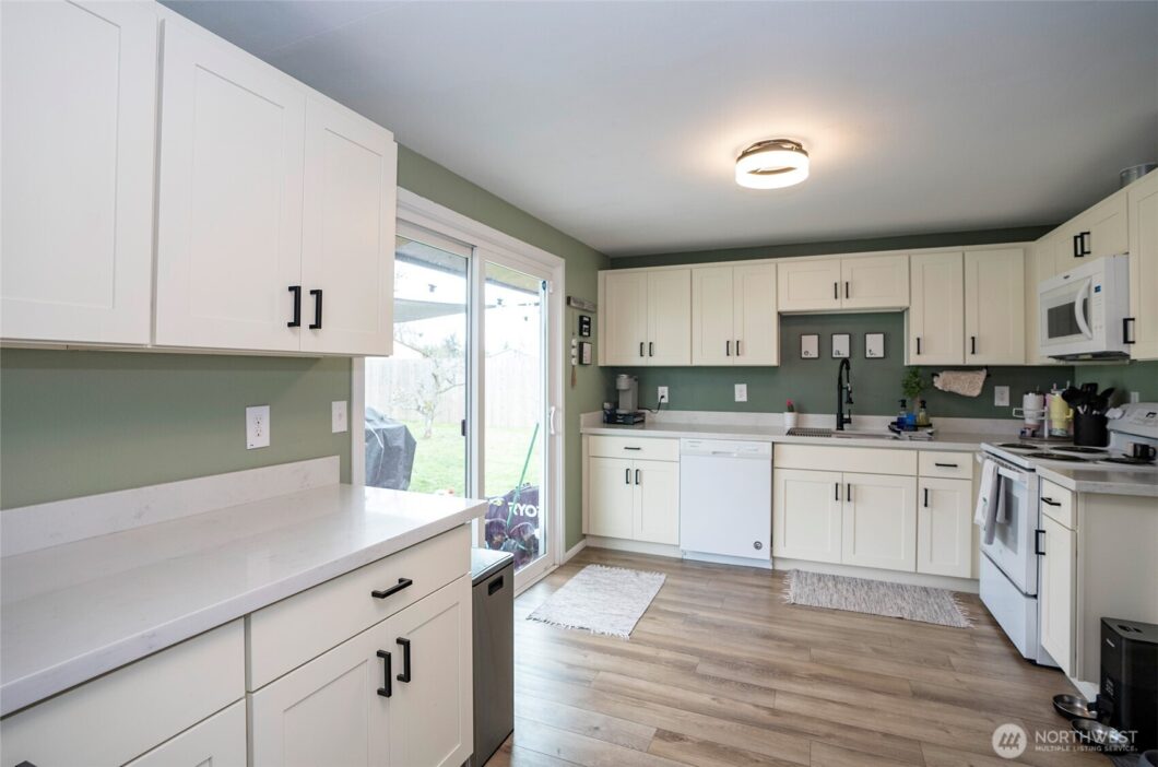 Lovingly maintained Turn Key Rambler down to the studs in 2022 and fully updated with new fixtures, appliances, cabinets, windows, plumbing, and electrical. This home has a large fully fenced backyard for ample privacy, fruit trees, large patio for BBQ and entertaining. Step inside to find a large family main room and an additional Extra Finished Room/Office. The kitchen boasts a butlers pantry and a large laundry mudroom. The hallway leading to the far end of the home has two large bedrooms that share one full updated bathroom. This home is worth the look, convenient location on a quiet street, come tour today!
