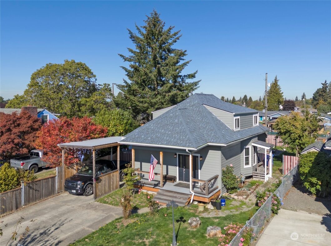 Lovely Craftsman with all the right updates! This home provides garage parking with EV charging, RV covered parking with hook up, garden space, outdoor recreational space, detached garage with ally access, and a fully fenced lot. The home has new Luxury Vinyl flooring, new bathroom fixtures & cabinetry, New Kitchen, New windows & doors, new roof, a spacious pantry and laundry-mud Rm. The main floor has a large Suite boasting walk in rain shower, half bath for guests, and upstairs has bedroom and separate full bath with full jr. suite with bedroom and ensuite 3/4 bath. This home is stunning in person and offers views of Mt. Rainier, close to Ruston, Gig Harbor and UP this Lovely home offers all the character & modern conveniences.