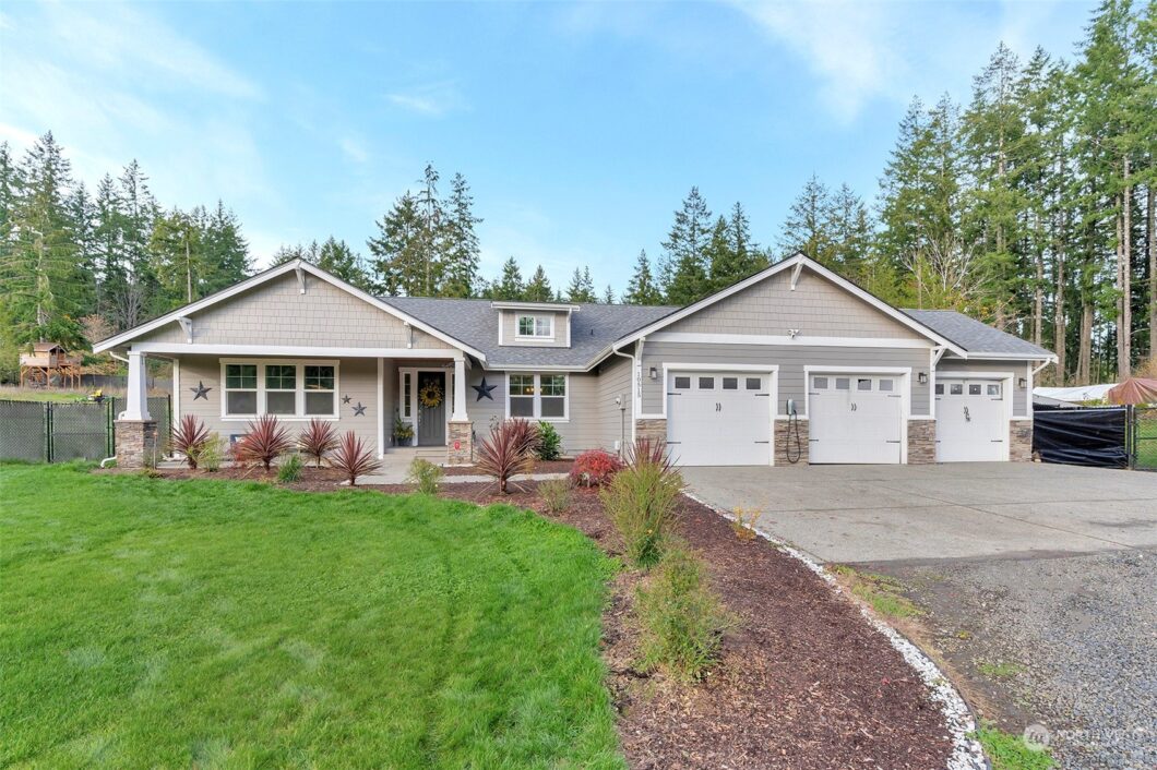 Pristine Rambler sitting on flat usable 5 acre lot; This home has hardwood floors, updated appliances, luxury main suite featuring large soaking tub and large walk in closet, two beds share a full bath, laundry room with ample storage leads you out to 3 Car Garage. The covered back patio provide views of large Fully Fenced Yard, perennial flowers surround the home and mature Roses for Spring and summer enjoyment. Home updated with 4 bedroom septic system ready for future building or ADU the 2.5 acres of wooded flat land offers a blank canvas ready for imagination and expansion.