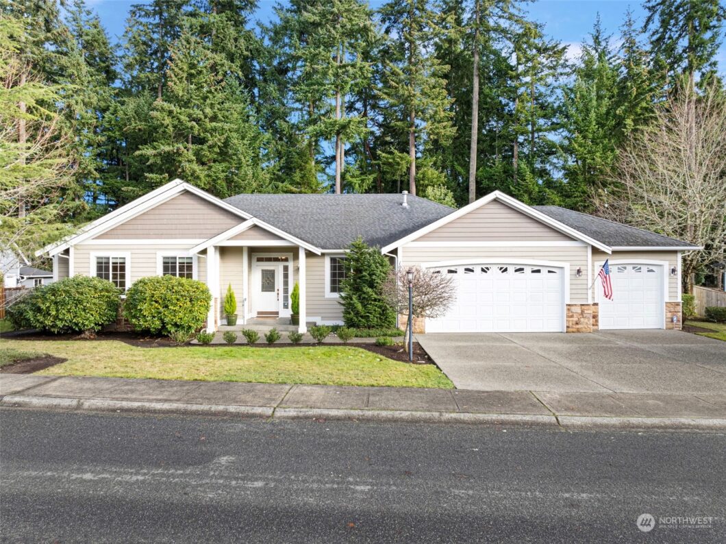 Charming, open, spacious & clean – This 2,168 sq ft, 3-bedroom, 2-bath rambler in sought-after Henderson Bay Estates offers easy living in a fantastic floorplan featuring soaring ceilings, large windows & abundant natural light. Fresh interior paint creates a bright & welcoming feel, while a heat pump & natural gas provide efficient year-round comfort. The 3 generously sized bedrooms & versatile office are perfect for work, hobbies, or guests. Enjoy the covered back deck overlooking a tranquil greenbelt, ideal for relaxing or entertaining. Nestled in a peaceful community, close to schools, neighborhood parks & local amenities. This well-maintained home offers style, comfort & convenience in one of Gig Harbor’s most desirable locations.