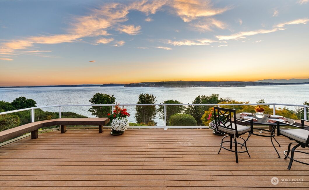Spectacular Puget Sound and Olympic Mt views from this sleek daylight rambler in UP! Sited high above the water and tucked into one of UP’s most coveted locations. Magical Western exposure & stunning sunsets. Gorgeous outdoor spaces feature koi pond and waterfall, front and rear decks, mature landscaping, ground lighting & flagstone paths. Substantially updated, yet preserving a modest 1950’s vibe with a great footprint & solid bones. Light airy main level with vaulted ceilings and exposed wood beams. Updated kitchen with access to oversized view deck. Main level primary bedroom and lower level family room with 3/4 bathroom. Newer roof, side deck, heat pump, H2O heater, furnace, West facing Anderson windows and more. Superb view!