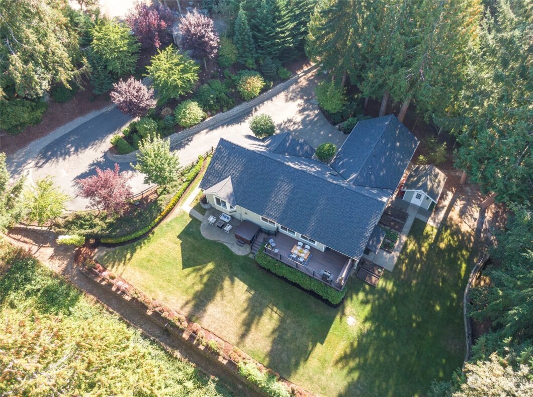 Absolutely pristine Lake Sylvia rambler with finished daylight basement. Showpiece home completely dialed & totally private. Tastefully landscaped with cherry tree lined private driveway complete with split-rail fencing. Immaculate grounds featuring mature fruit trees, fully-fenced yard, spacious trex deck & hot tub. Beautiful relaxed vibe throughout the home’s interior. Stunning entry leads to gorgeous great room area with vaulted ceilings, hardwood floors, custom FP and abundant natural light. Crisp clean kitchen with white shaker cabinets, SS appliances, large center island & recycled glass counter tops. Elegant main floor primary suite w/ shiplap accent wall. Finished lower level offers fabulous flex space. Utterly adorable!