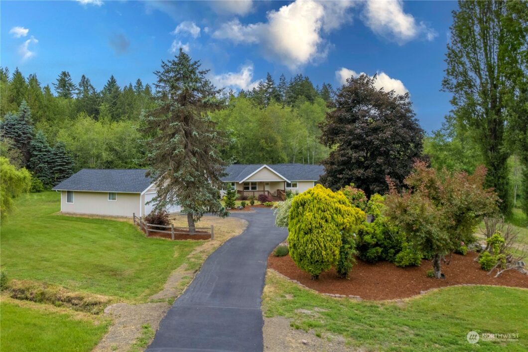 Turn key rambler on a gorgeous, level 4.58 acre spread. Lovely mini farm complete with a private pond, 24×30 detached shop/garage, expansive fields, split-rail fencing, 3 decks, outbuilding with dog run, chicken coop and much more. Beautiful mature landscaping and gardens throughout. Recently resurfaced private driveway and a new septic system. Recently remodeled including updated roof, windows, floors, kitchen and bathrooms. Large living room with adjacent dining room. White shaker kitchen cabinets with granite counter tops and a propane range/oven. 3 bedrooms include the primary with on-suite bathroom and separate outdoor entrance. Finished 2nd floor bonus space for potential office or rec room. Come see!